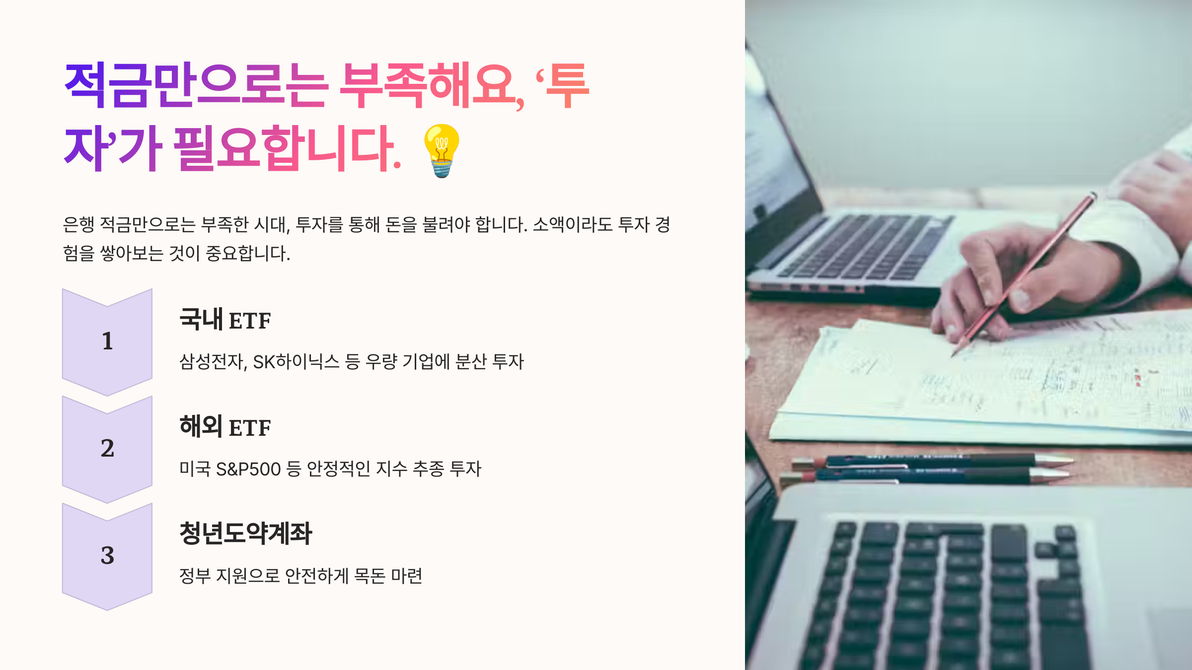## 3. 적금만으로는 부족해요, ‘투자’가 필요합니다. 💡