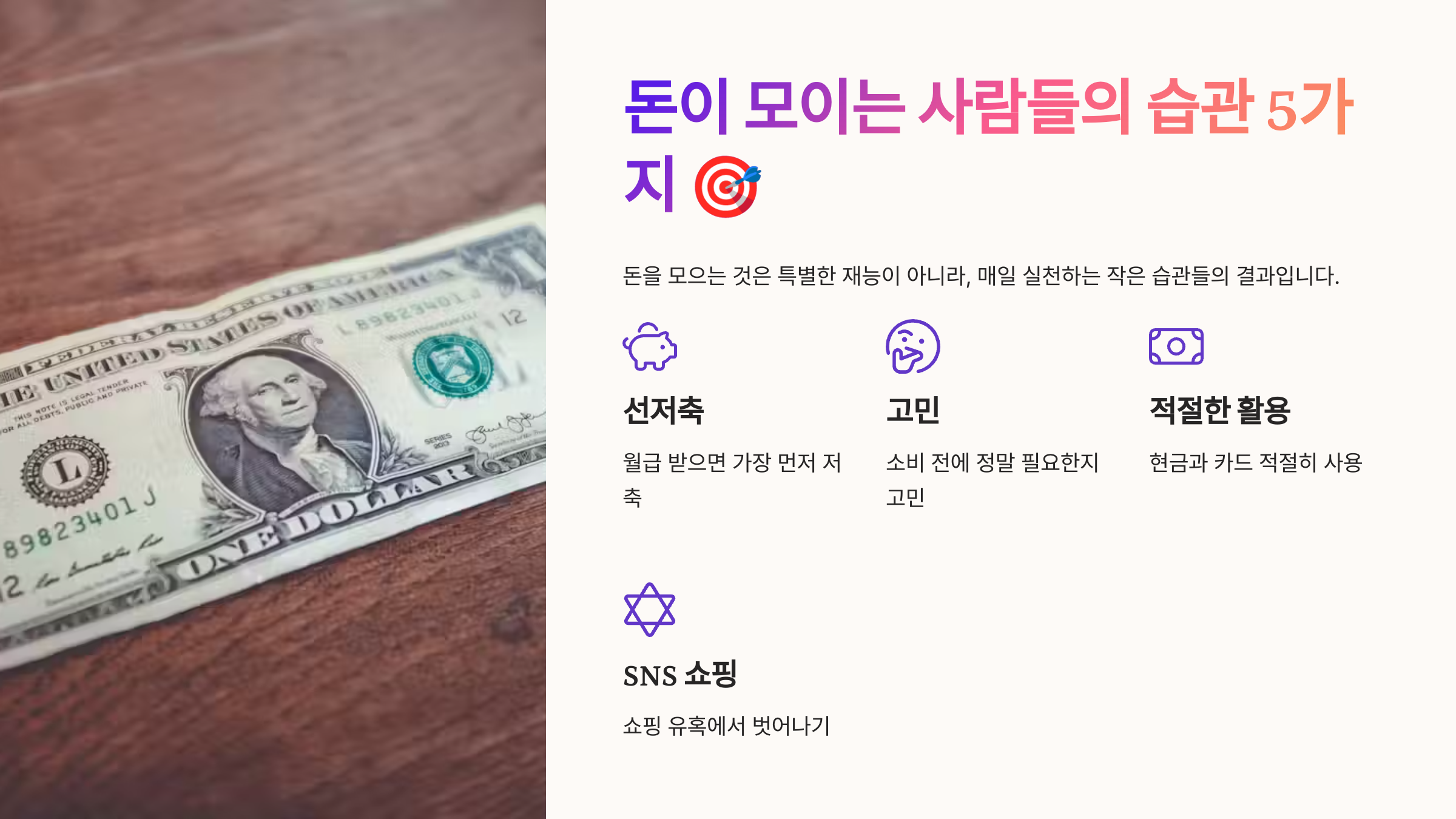 작은 습관 하나가 미래의 경제적 자유를 결정할 수 있어요. 😊