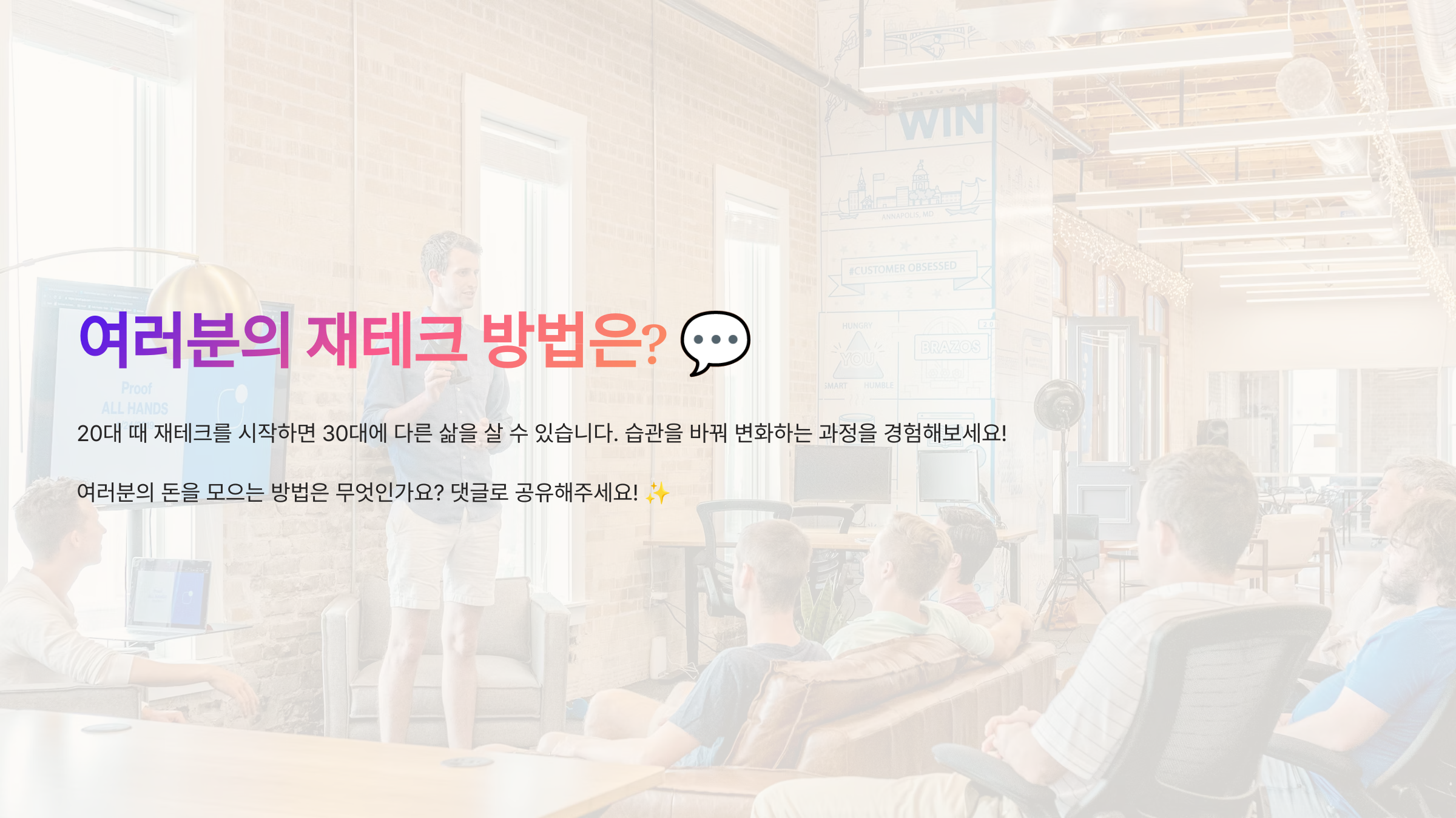 오늘은 20대가 현실적으로 실천할 수 있는 가장 효과적인 재테크 방법을 소개해 드릴게요.