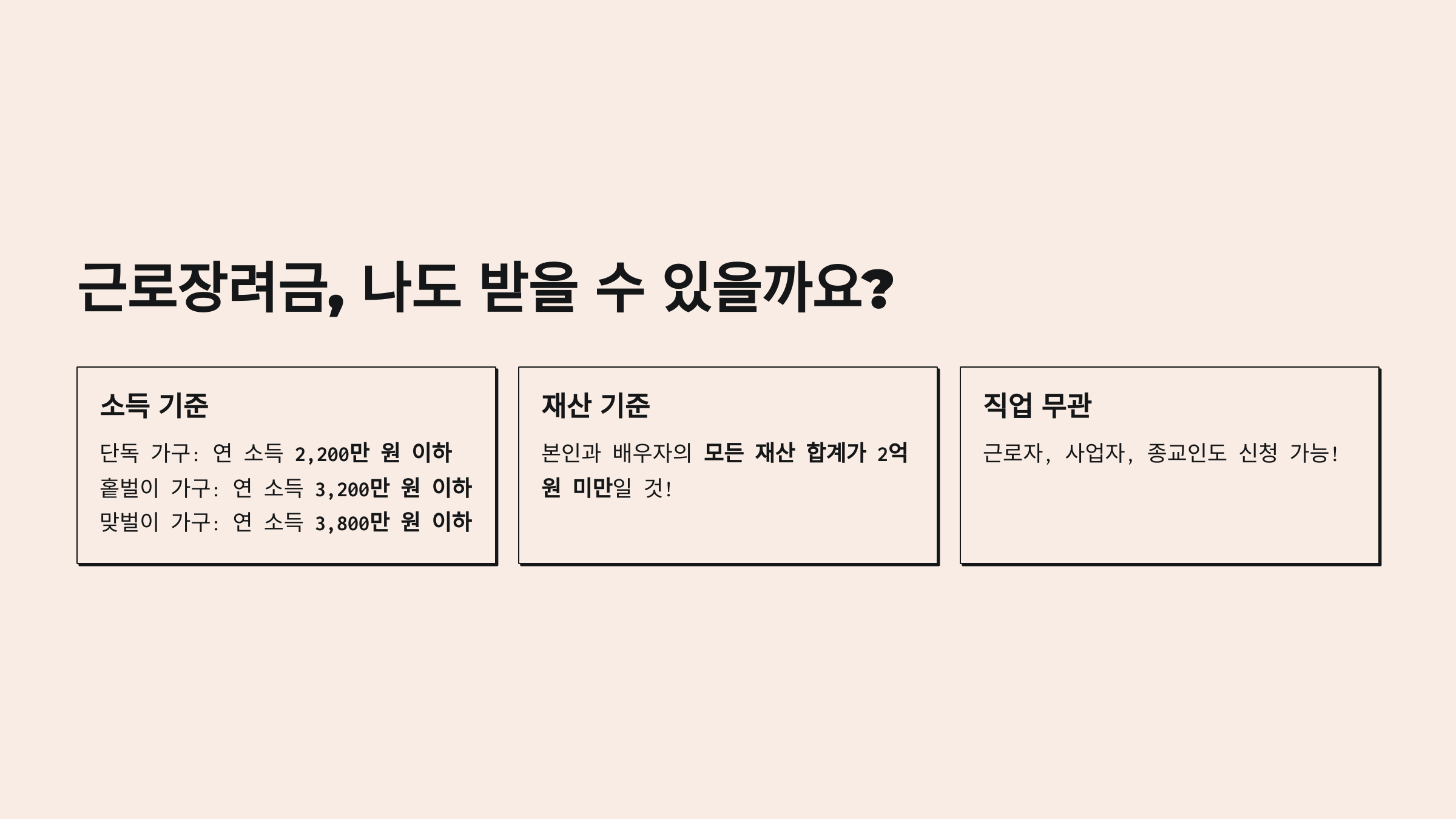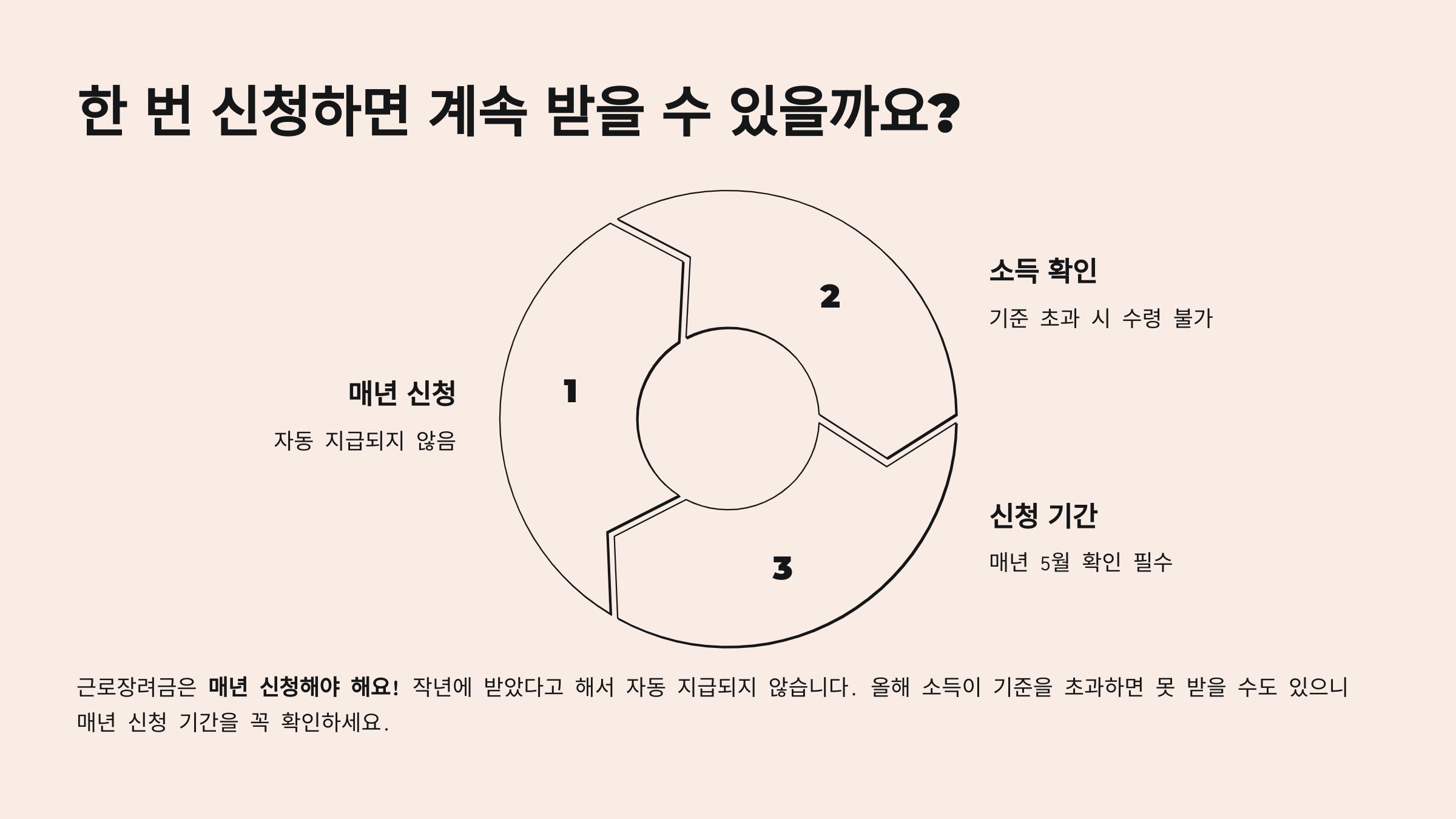 ✔ 올해 소득이 기준을 초과하면 못 받을 수도 있어요.