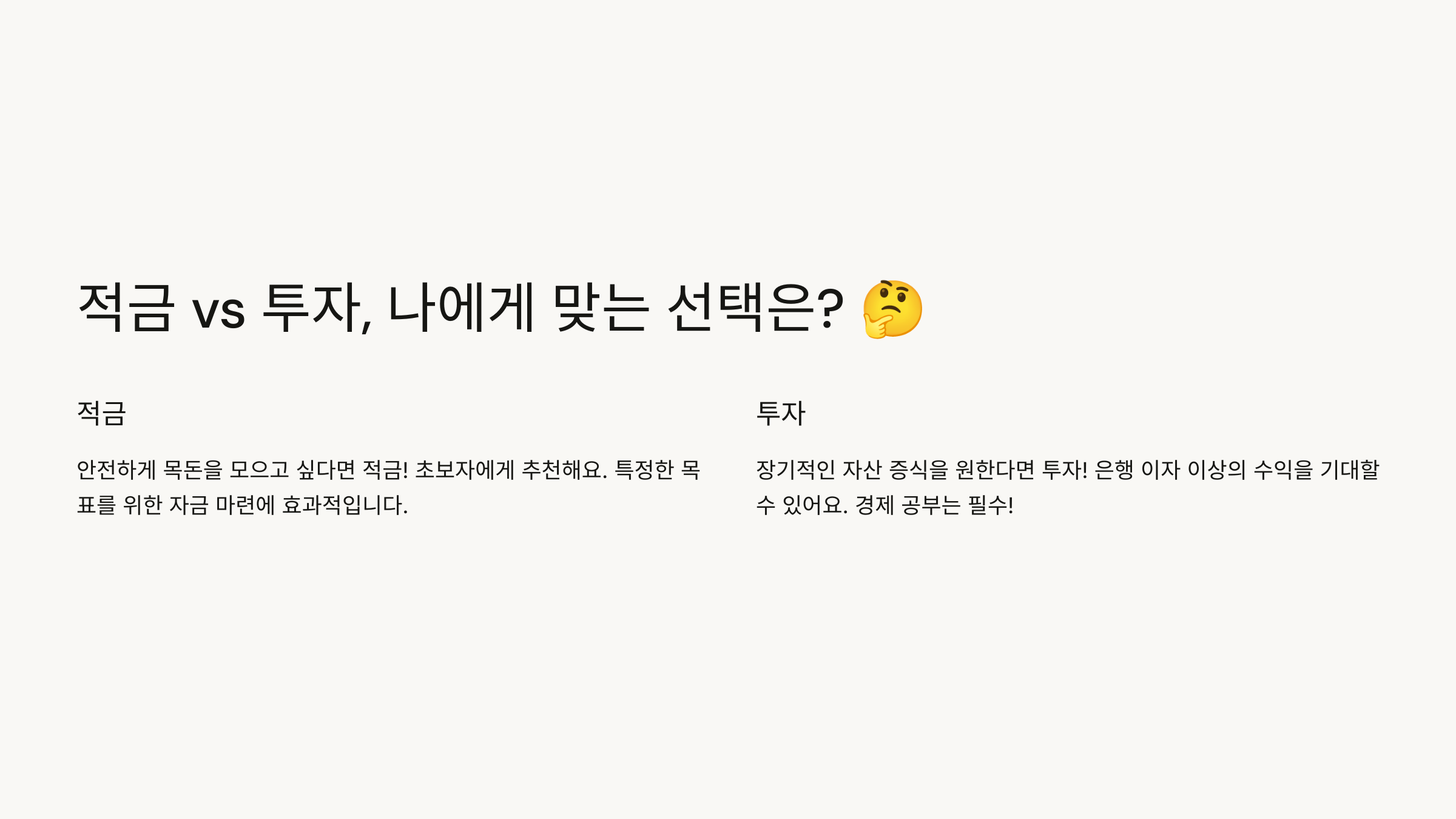 그렇다면 ‘적금’과 ‘투자’ 중 어떤 걸 해야 할까요?